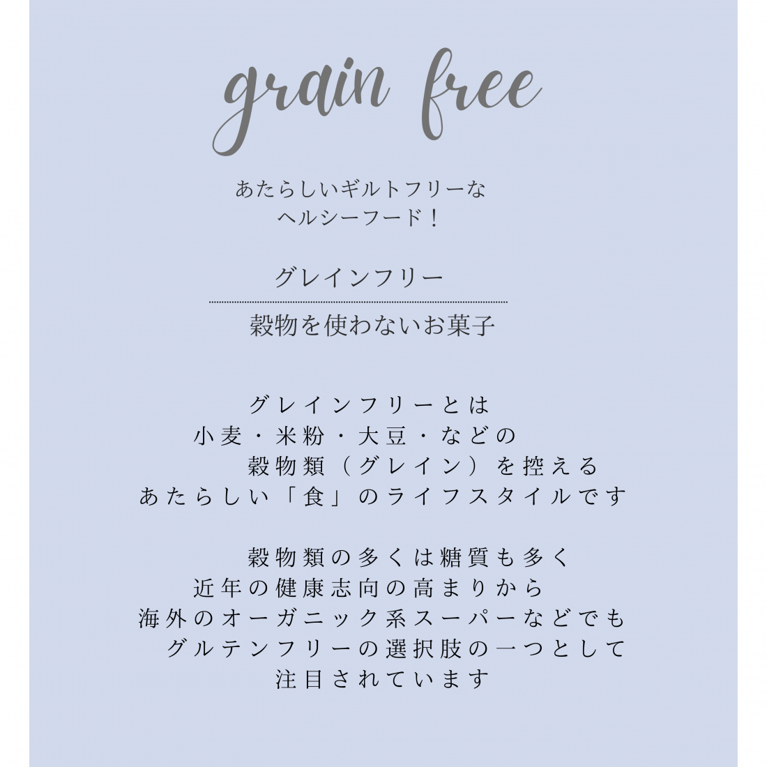 小麦・米・大豆などの穀物類を使用せず、アーモンドパウダ、ココナッツフラワー、卵、ココナッツオイル、などを基本の生地にし焼き上げました。